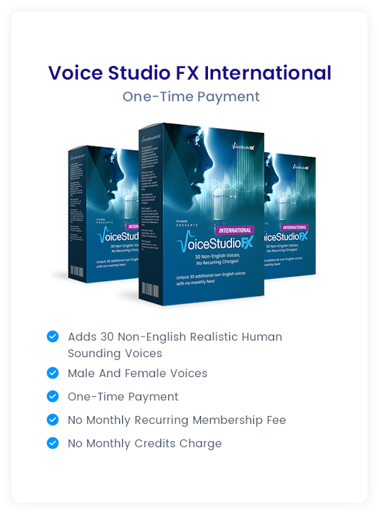 Of course, Voice Studio FX International is covered by my 30 day money back guarantee. This way you can upgrade today with total confidence. If you don’t feel that Voice Studio FX International is everything I promised, simply request a refund within 30 days and we’ll part as friends.